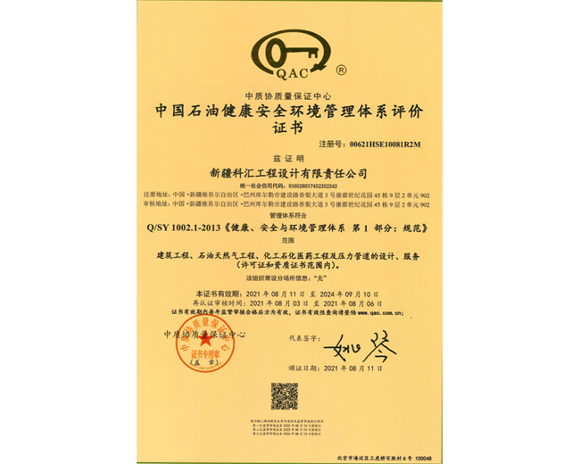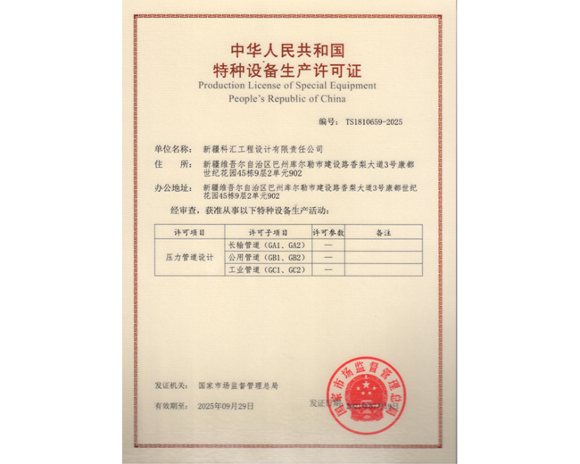 新疆科汇工程设计有限责任公司前身是中国石油塔里木油田塔西南勘探开发公司设计所,2003年3月改制成为独立法人企业。注册资本:1000万元。公司注册地:库尔勒市香梨大道3号康都世纪花园45号楼。现有资质:建筑工程乙级;石油天然气(管道输送、油气库、油田地面工程设计)乙级;化工石化医药(炼油工程、化工工程设计)乙级;电力行业(新能源发电乙级、送电工程、变电工程乙级)压力管道(GA类、GB类、GC类)设计; 设计证编号为:A265002339。2015年11月取得质量、安全、环境及中石油HSE管理体系四个体系认证书;中国石油集团公司、中国石化集团公司准入服务单位。